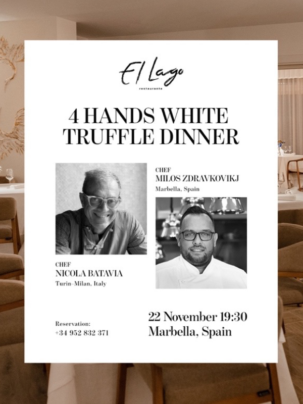 Marbella, 12 noviembre de 2025. – El próximo 22 de noviembre, el restaurante El Lago, ubicado en el entorno privilegiado de Elviria Hills (Marbella), acogerá una velada gastronómica de excepción: la Cena a Cuatro Manos de Trufa Blanca, un encuentro único entre dos grandes chefs que unen su talento y creatividad para rendir homenaje a uno de los productos más codiciados del mundo gastronómico.